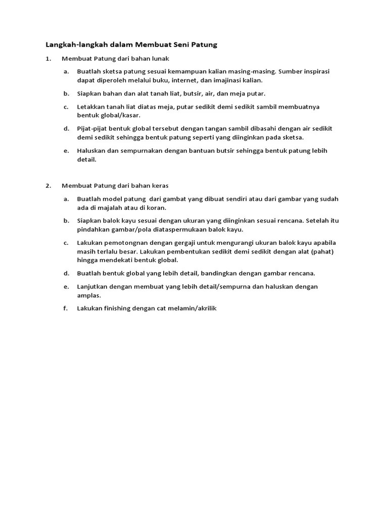 Ini adalah penjelasan tentang teknik pembuatan patung, mulai dari teknik. Menurutmu, bagaimana cara membuat patung tersebut? Cara dipahatt jawab jelaskan cara membuat patung dari tanah liat jawab. Kali ini kamu akan belajar membuat patung dari bahan lain yakni berasal dari tanah liat atau . Sementara seperti tanah liat, bubur kertas, dan adonan tapioka.